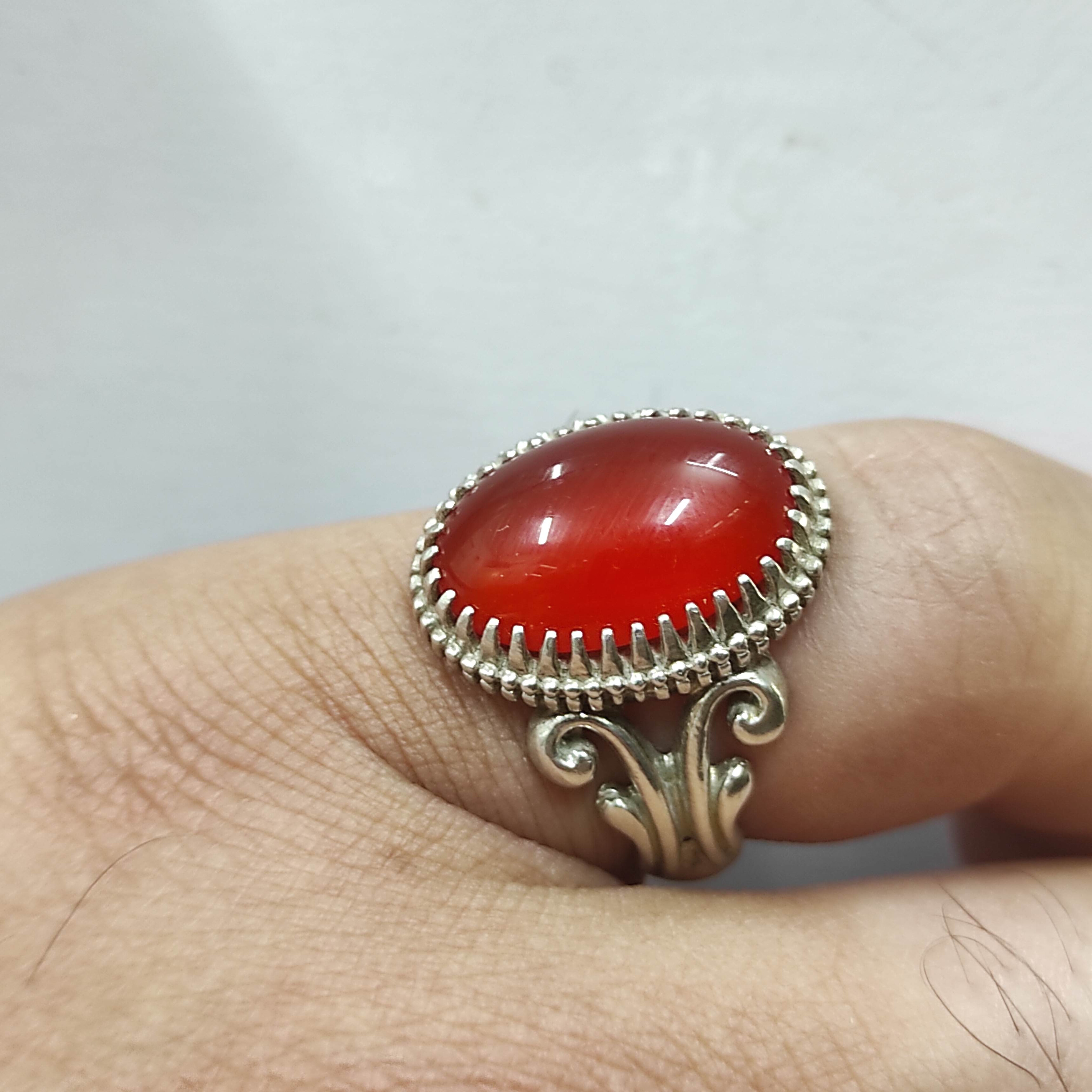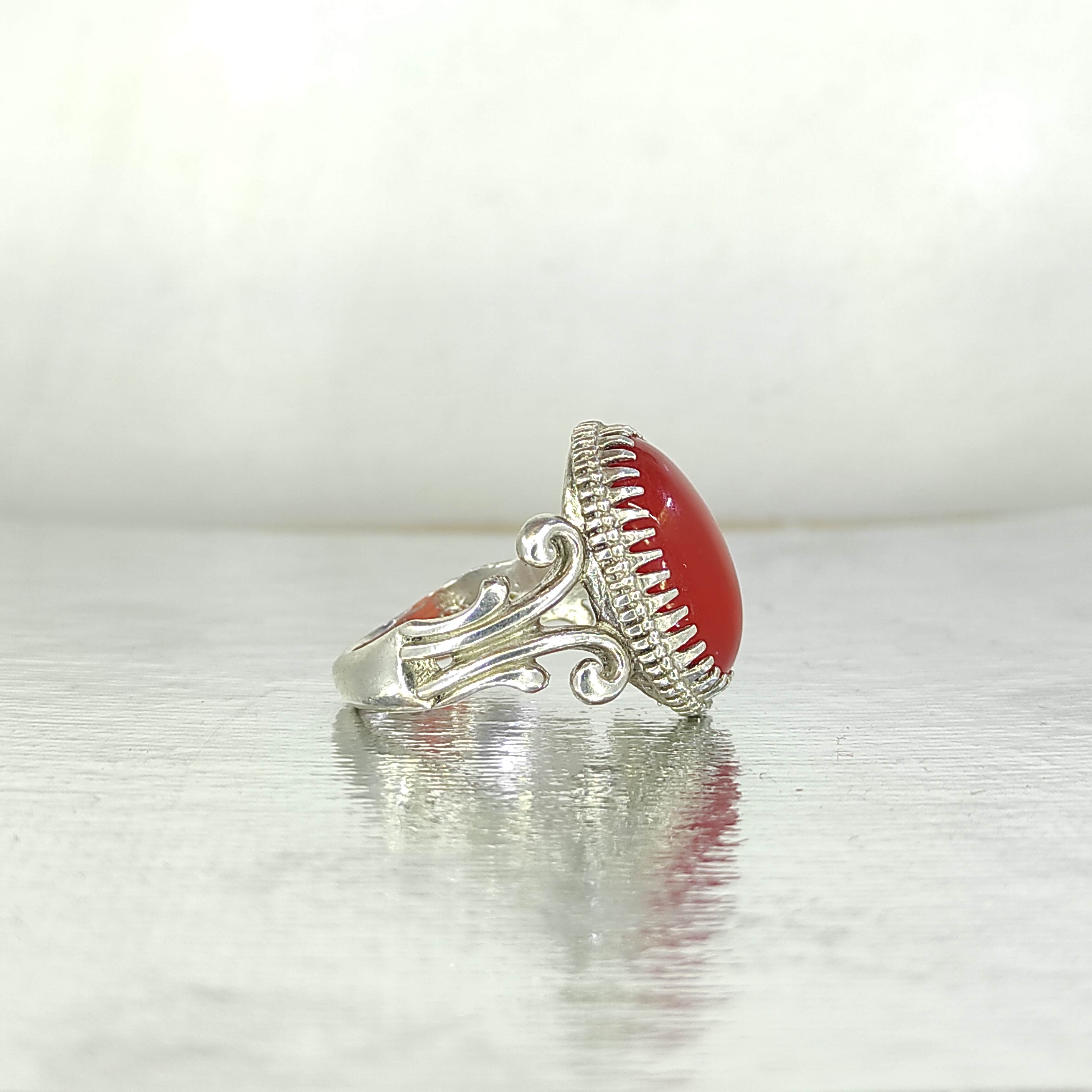 انگشتر نقره عقیق سرخ. سایز ۵۹ وزن ۸.۵۰ رکاب نقره ۹۲۵ عیار استاندارد با انگشتر نقره عقیق سرخ، جلوهای از شکوه و اصالت را به دستانتان بیاورید. این انگشتر با طراحی زیبا و سنگ عقیق طبیعی سرخ، نمادی از عشق و انرژی مثبت است. مناسب برای خاصپسندان و ایدهآل برای هدیهای به یادماندنی. همین حالا سفارش دهید و درخشش جاودان را تجربه کنید!