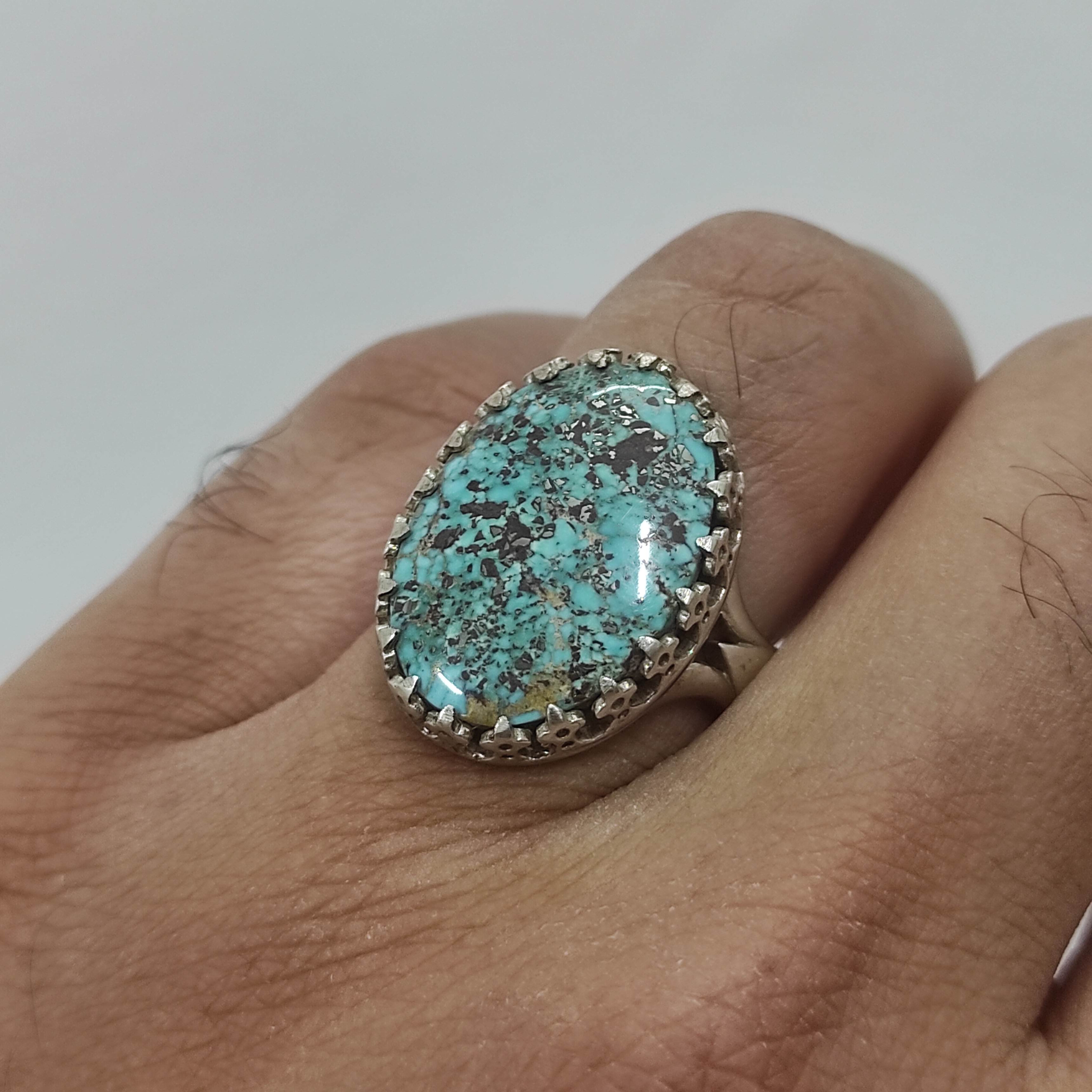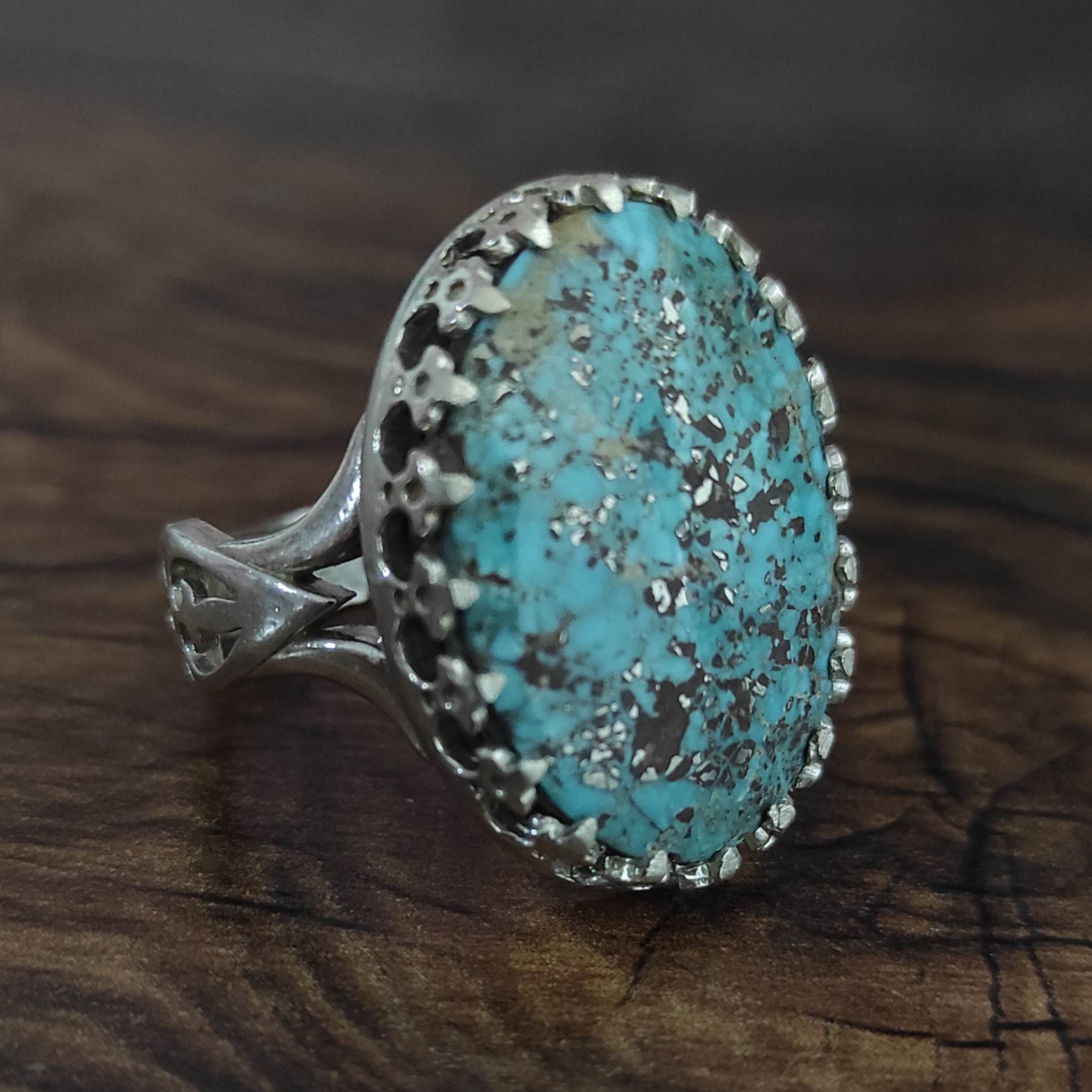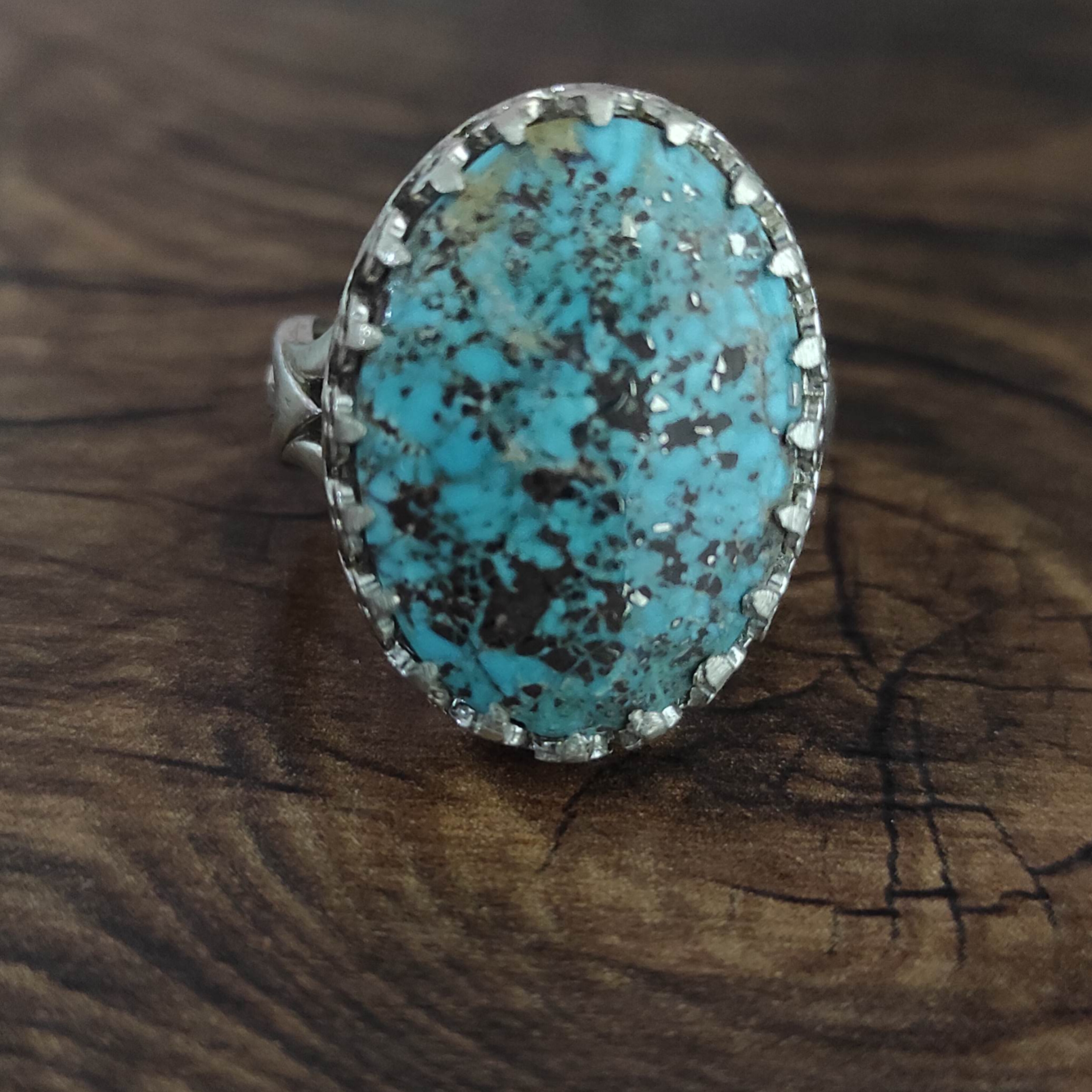 انگشتر نقره مردانه فیروزه اصیل نیشابور سایز ۶۵ وزن ۹.۲۴ رکاب نقره ۹۲۵ عیار استاندارد رکاب نیزه ای این انگشتر تلفیقی از هنر و طبیعت! با این انگشتر، استایل خاص و شیک خود را بهرخ بکشید. سنگ فیروزه نیشابوری معروف به جذابیت و انرژی مثبت، انتخابی عالی برای آقایان خوشسلیقه. همین حالا این گوهر اصیل را به دستان خود هدیه دهید و خاصتر از همیشه بدرخشید!