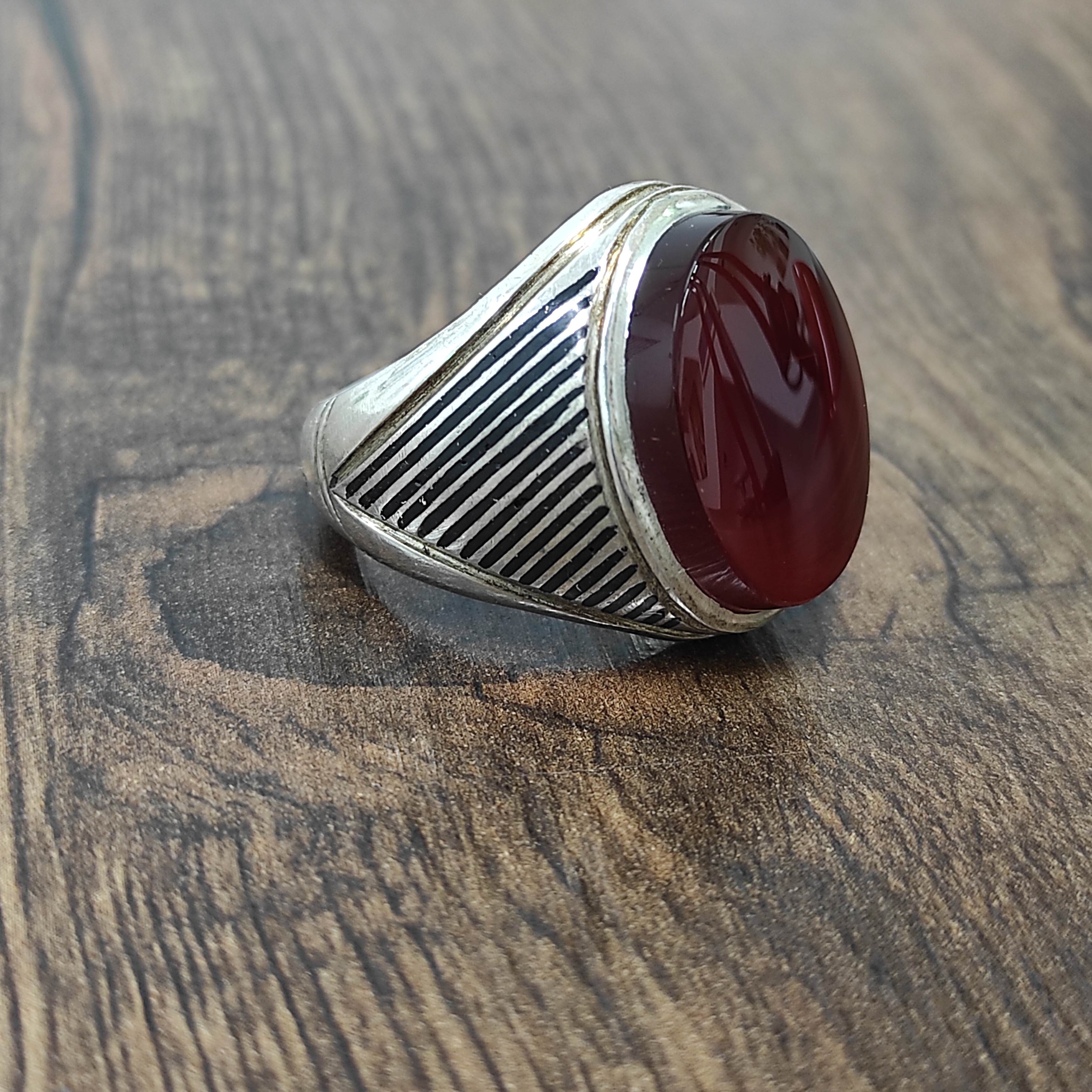 انگشتر مردانه عقیق سرخ جگری دست ساز. سایز ۶۶۶۷ وزن ۲۱.۰۹ رکاب نقره ۹۲۵ عیار استاندارد دست سازبا انگشتر مردانه عقیق سرخ، استایل و شخصیت خود را به اوج برسانید! این اثر هنری با رکاب دستساز، از دستان ماهرانه صنعتگران خلق شده و جلوهای بینظیر به دستان شما میبخشد. عقیق سرخ، سمبل قدرت و شجاعت، نه تنها زیبایی بلکه انرژی مثبت نیز به شما هدیه میدهد. همین حالا این جواهر ارزشمند را به کلکسیون خود اضافه کنید!