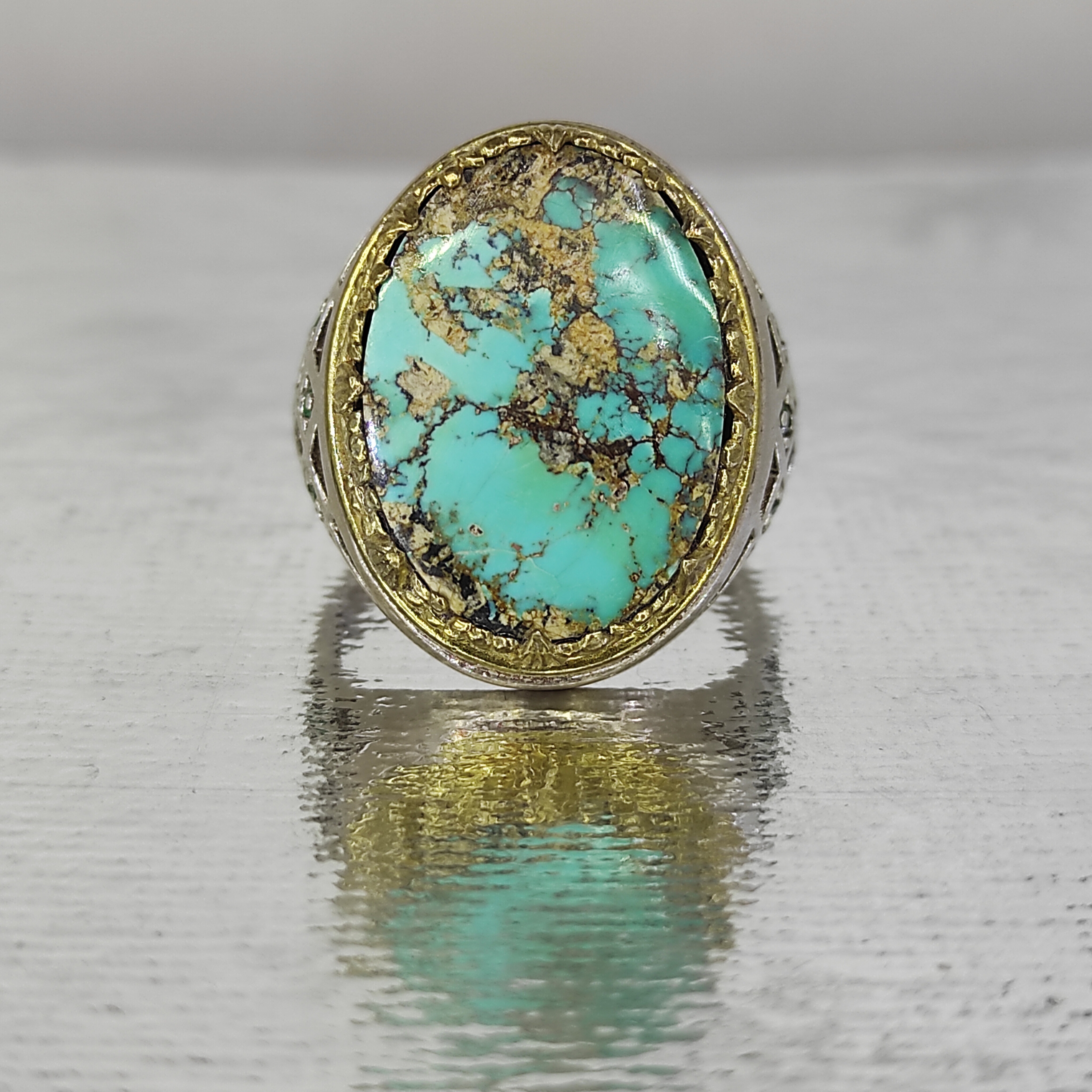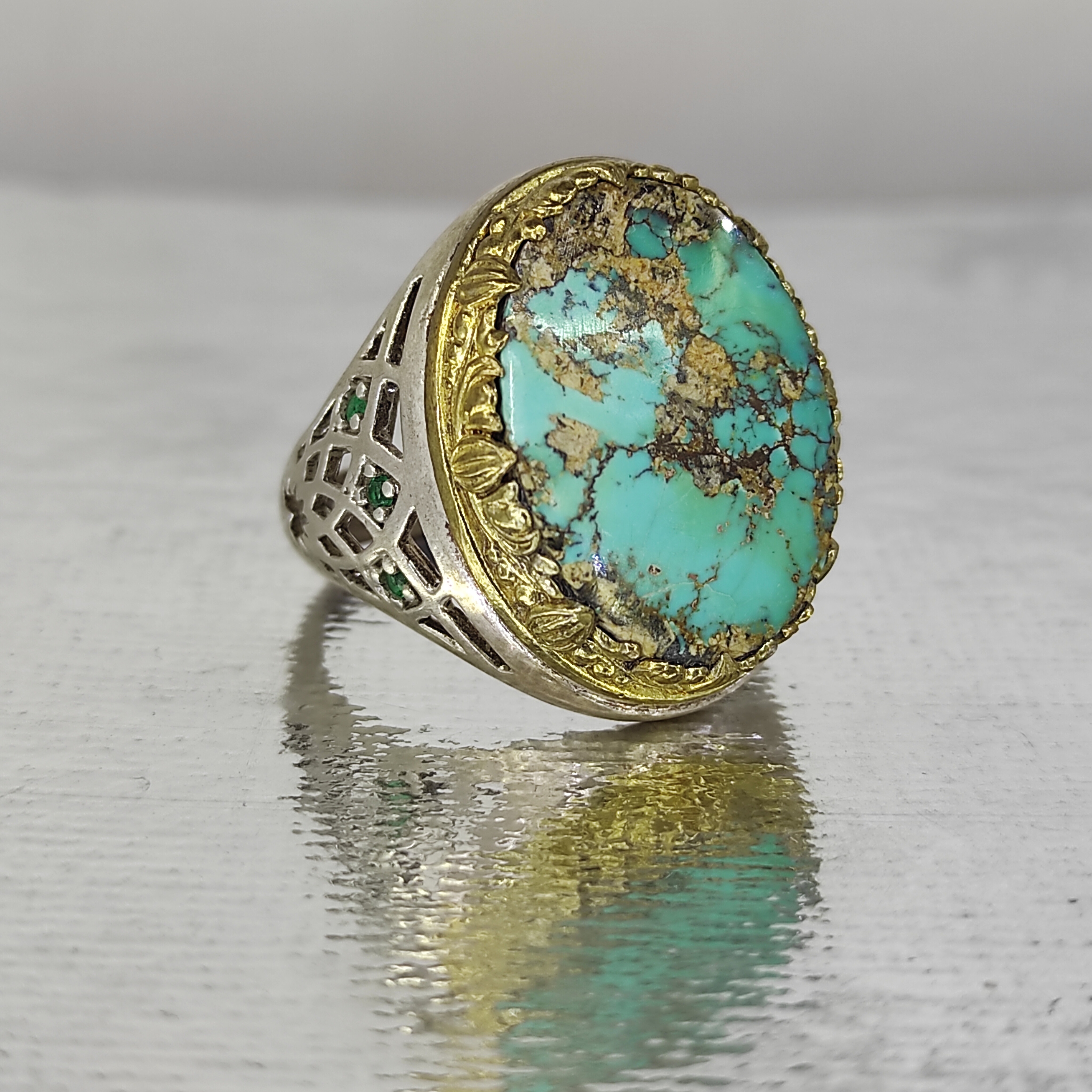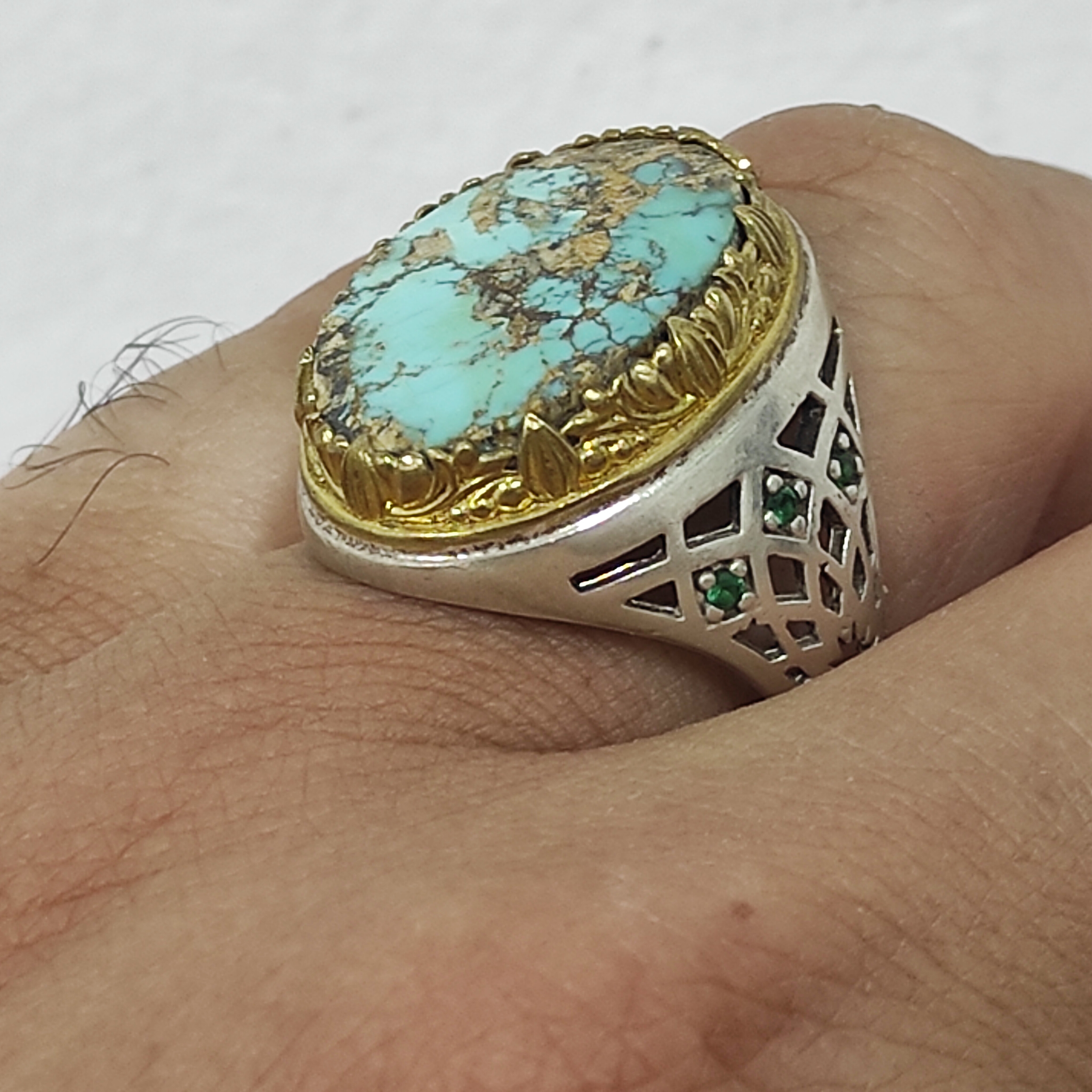 انگشتر فیروزه نیشابوری سنگ اصلی شجری رنگ فیروزه سبز آبی سایز ۶۷ وزن ۱۱.۵۵ رکاب نقره ۹۲۵ عیار استاندارد سر برنجی. با انگشتر مردانه فیروزه نیشابوری اصل، ظاهری متمایز و جذاب داشته باشید. این جواهر بینظیر با سنگ فیروزه طبیعی و اصالت نیشابور، نمادی از شکوه و قدرت است. طراحی چشمنواز و کیفیت برتر آن، انتخابی ایدهآل برای آقایانی که به دنبال زیبایی و مانایی هستند. همین حالا خرید کنید و به جمع خوشاستایلها بپیوندید!