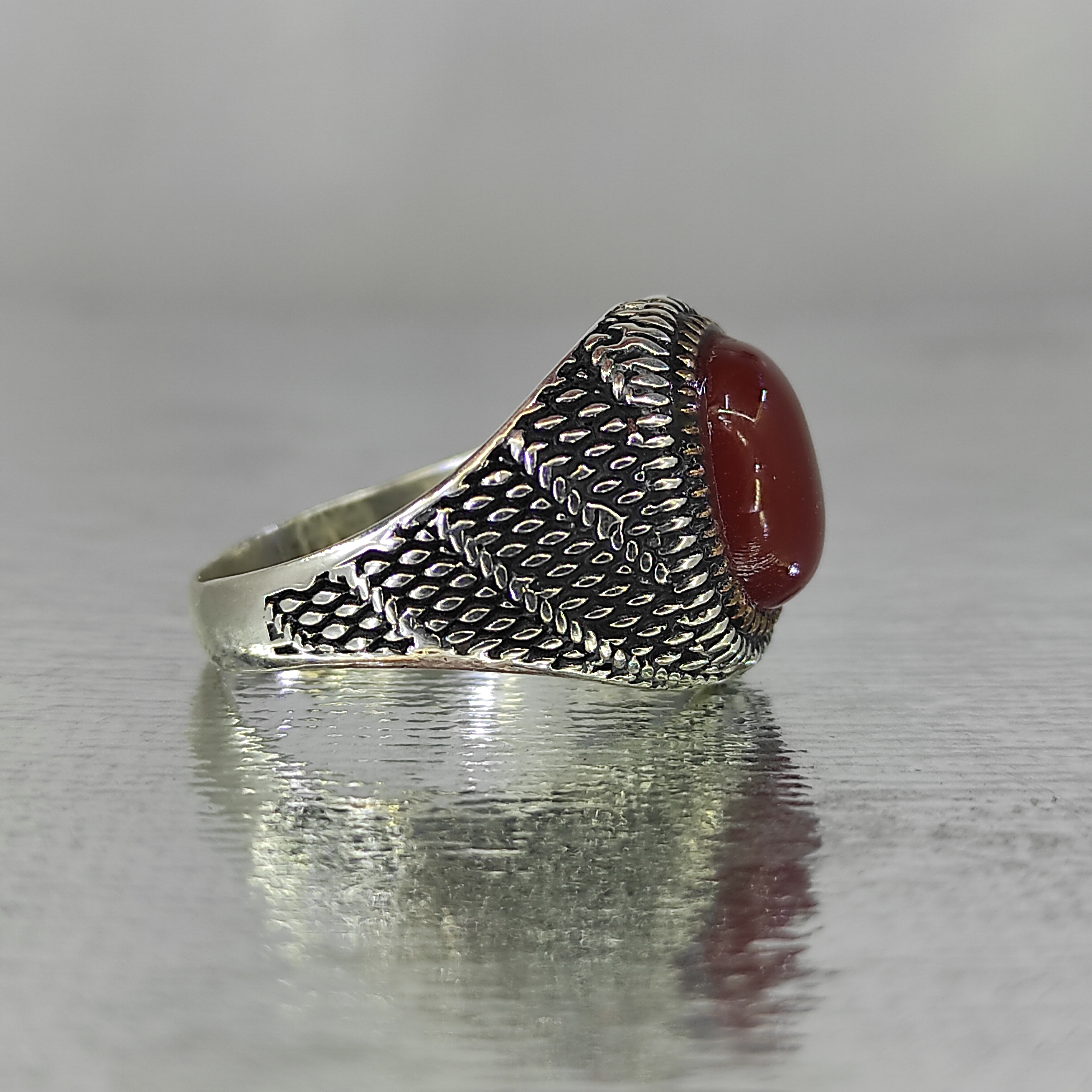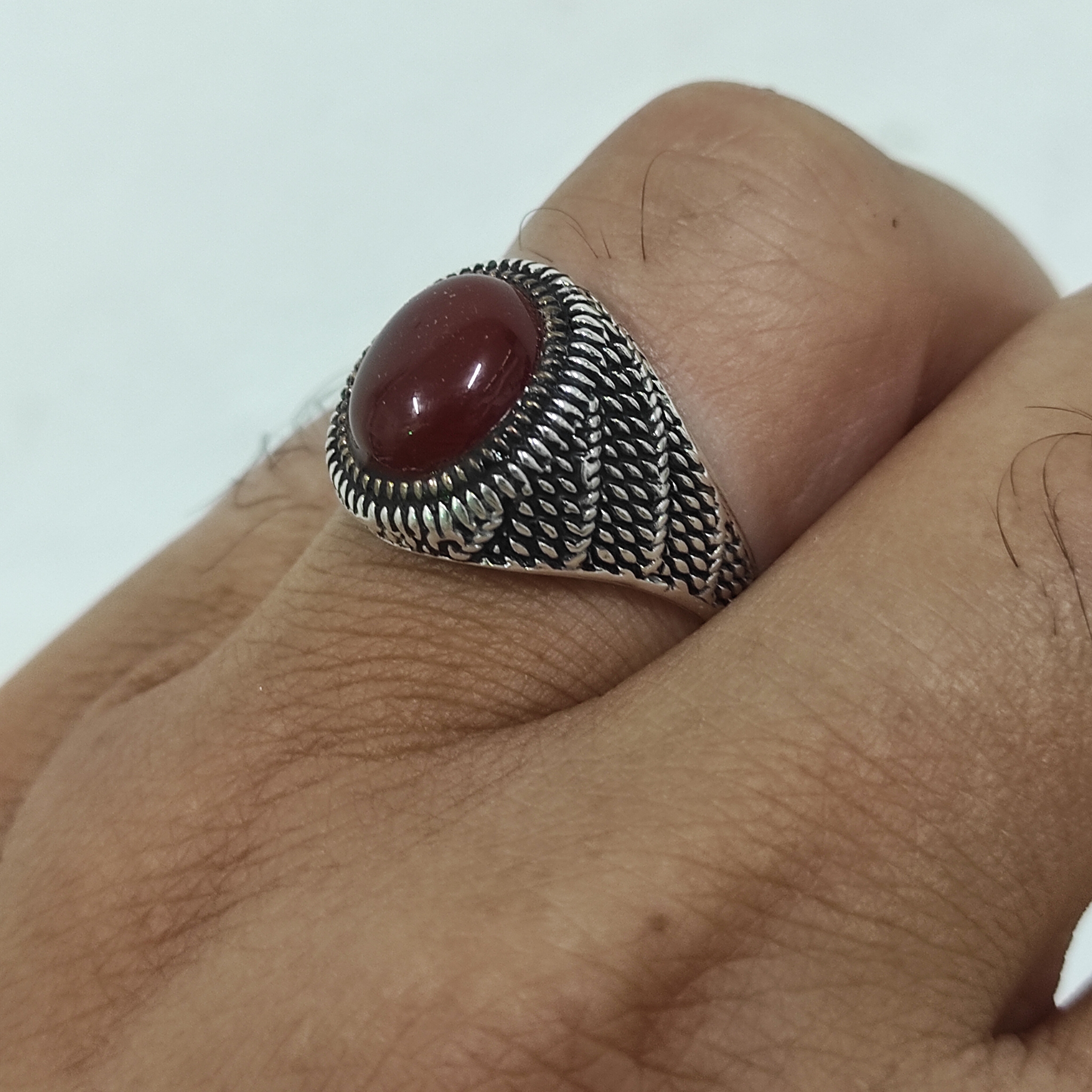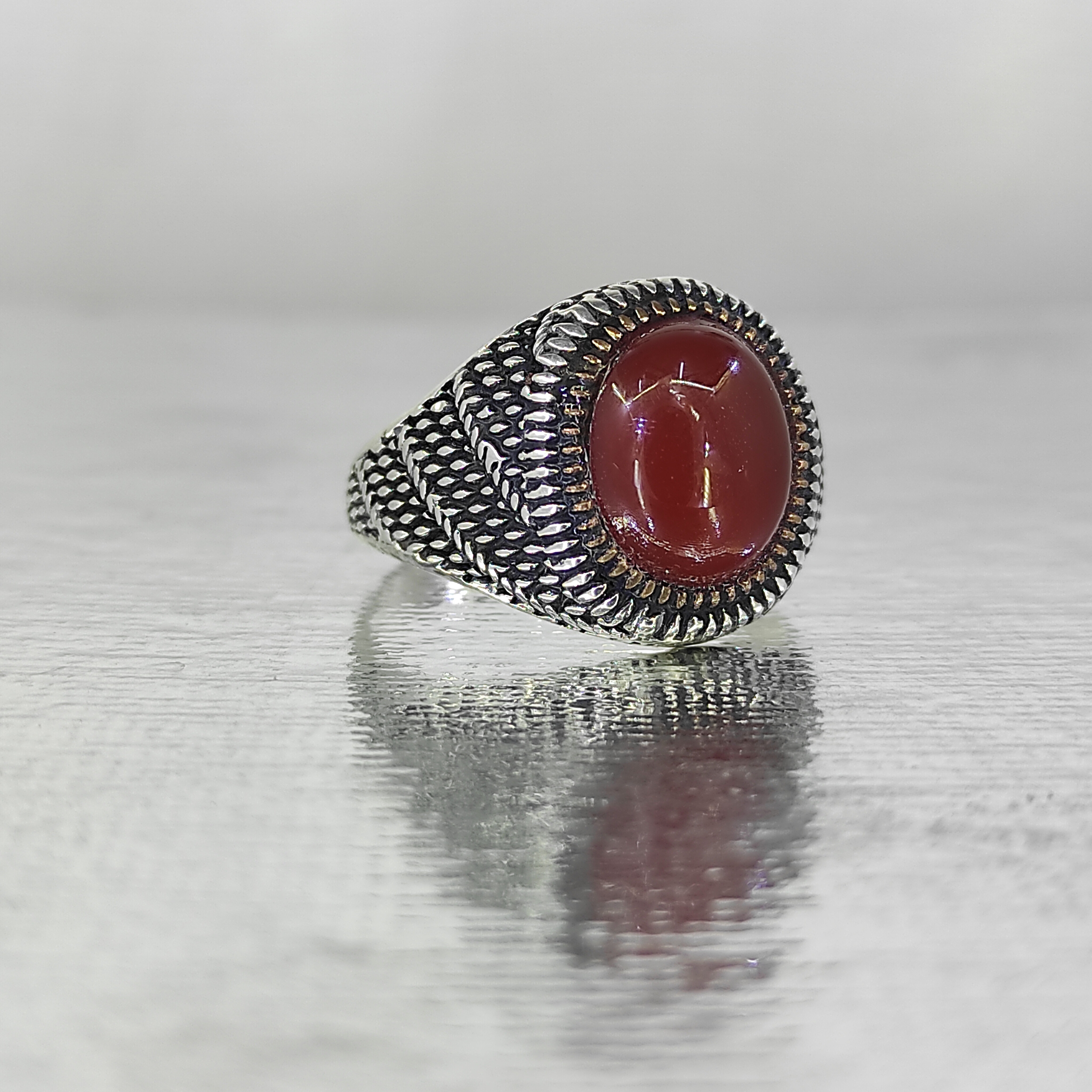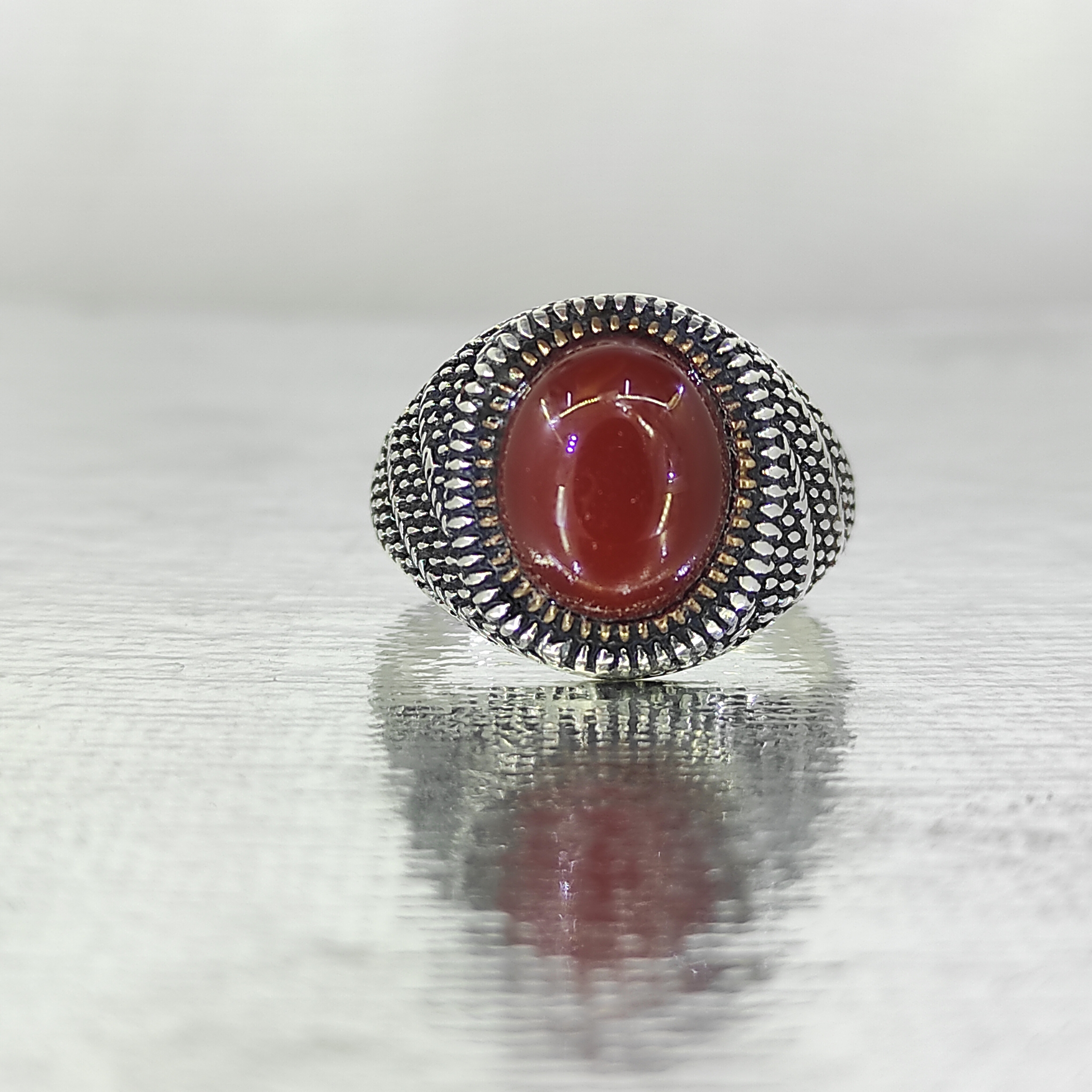 انگشتر عقیق مردانه رکاب سیاه قلم. نقره خارجی ترک سایز ۶۶ وزن ۸.۲۳ رکاب نقره ۹۲۵ عیار استاندارد. با انگشتر نقره مردانه عقیق سرخ، شکوه و جذابیت را به دستانتان بیاورید. سنگ عقیق سرخ نه تنها زیبایی خیرهکنندهای دارد، بلکه انرژی و اعتماد به نفس شما را نیز افزایش میدهد. طراحی منحصربهفرد و جنس مرغوب نقره این انگشتر، آن را به گزینهای ایدهآل برای هر مرد شیکپوش تبدیل کرده است. تجربهای لوکس و فراموشنشدنی در انتظار شماست!