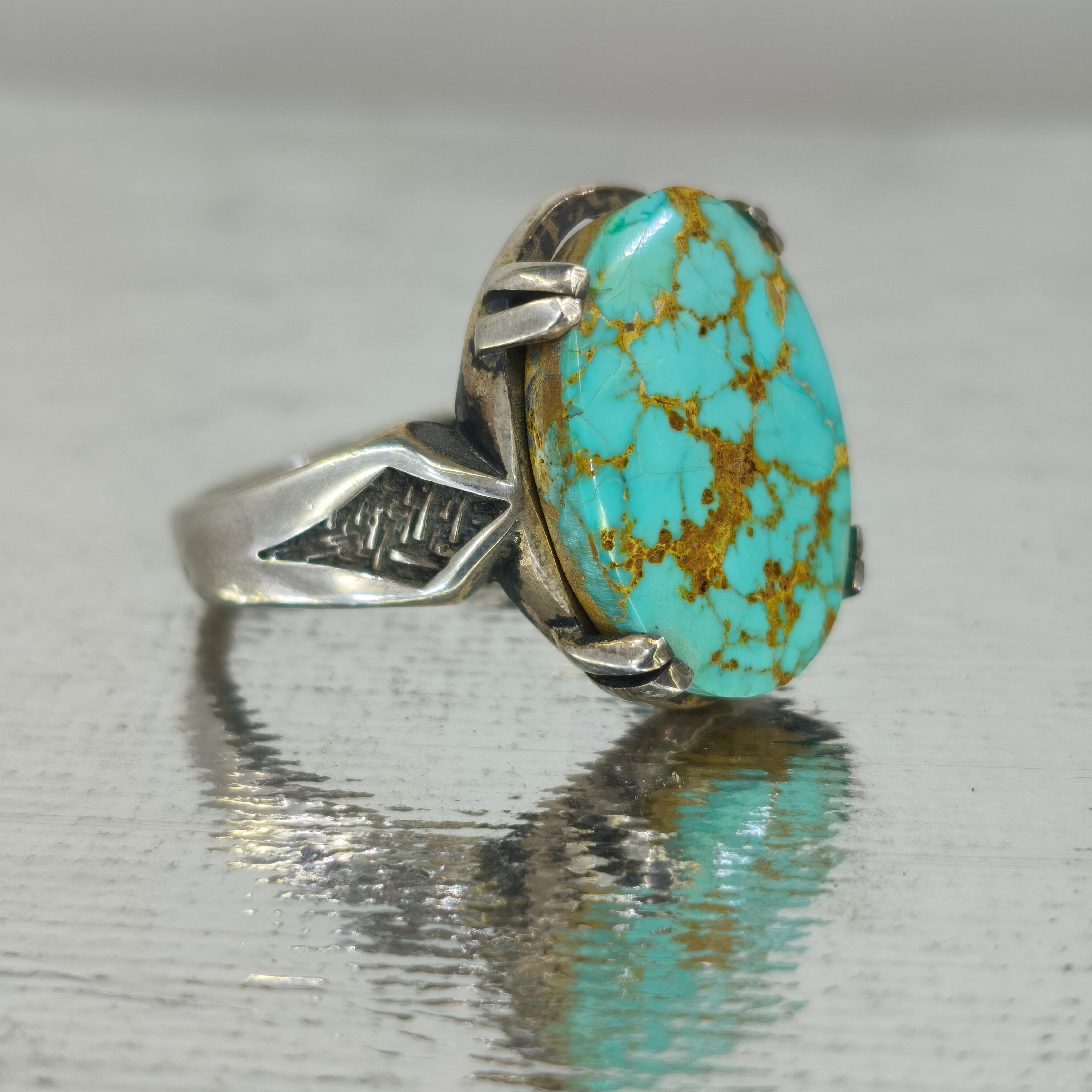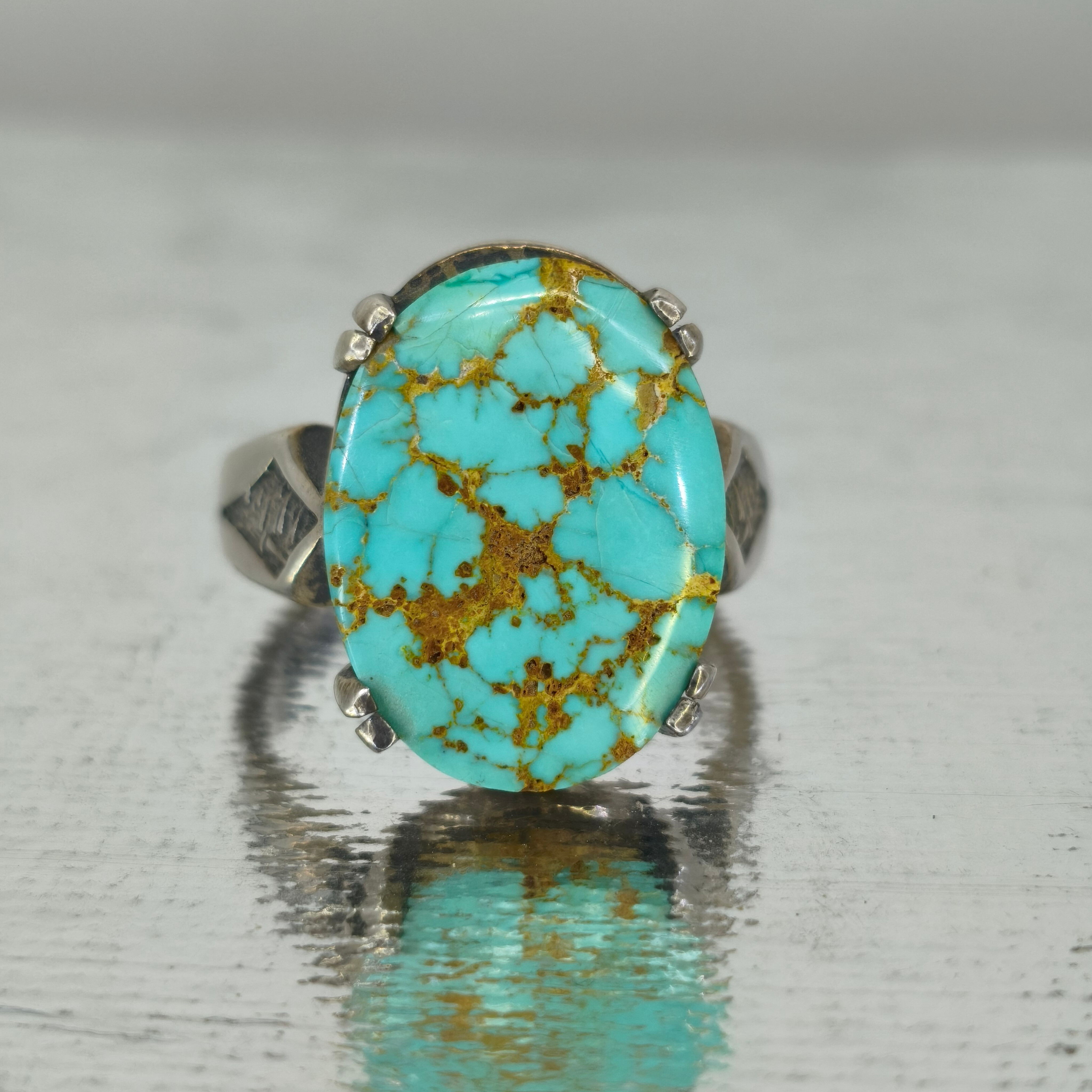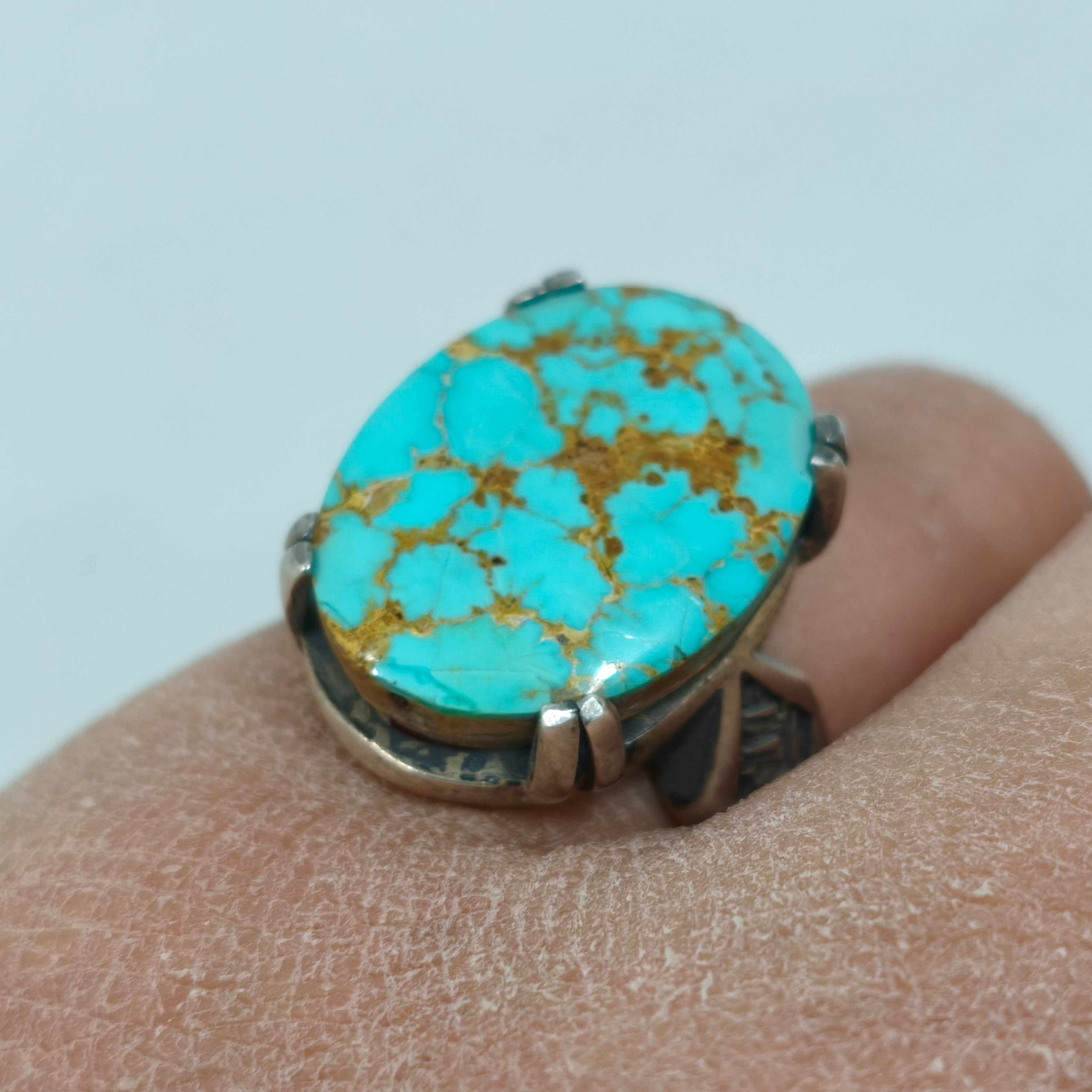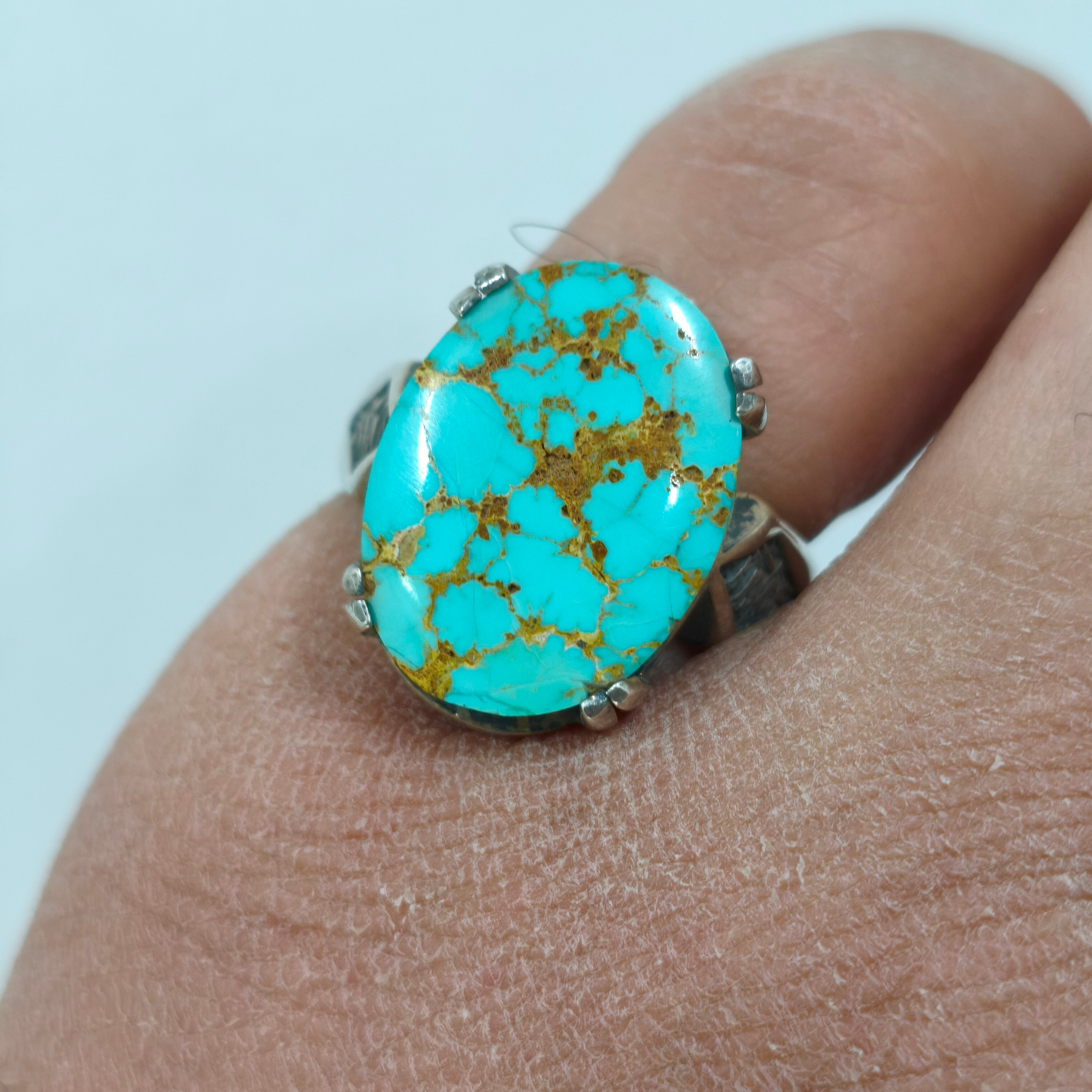 انگشتر فیروزه نیشابوری رگه طلایی، وزن ۸/۸۸ سایز ۶۴ رکاب نقره ۹۲۵ عیار استاندارد با این انگشتر شکوه و اصالت را به دستانتان بیاورید. این سنگ نیمهقیمتی با طرح طبیعی و منحصربهفردش جذابیت خاصی به استایل شما میبخشد. با خرید این انگشتر، نه تنها زیبایی، بلکه انرژی مثبت و آرامش را نیز تجربه کنید. فرصت را از دست ندهید و همین حالا خرید کنید!