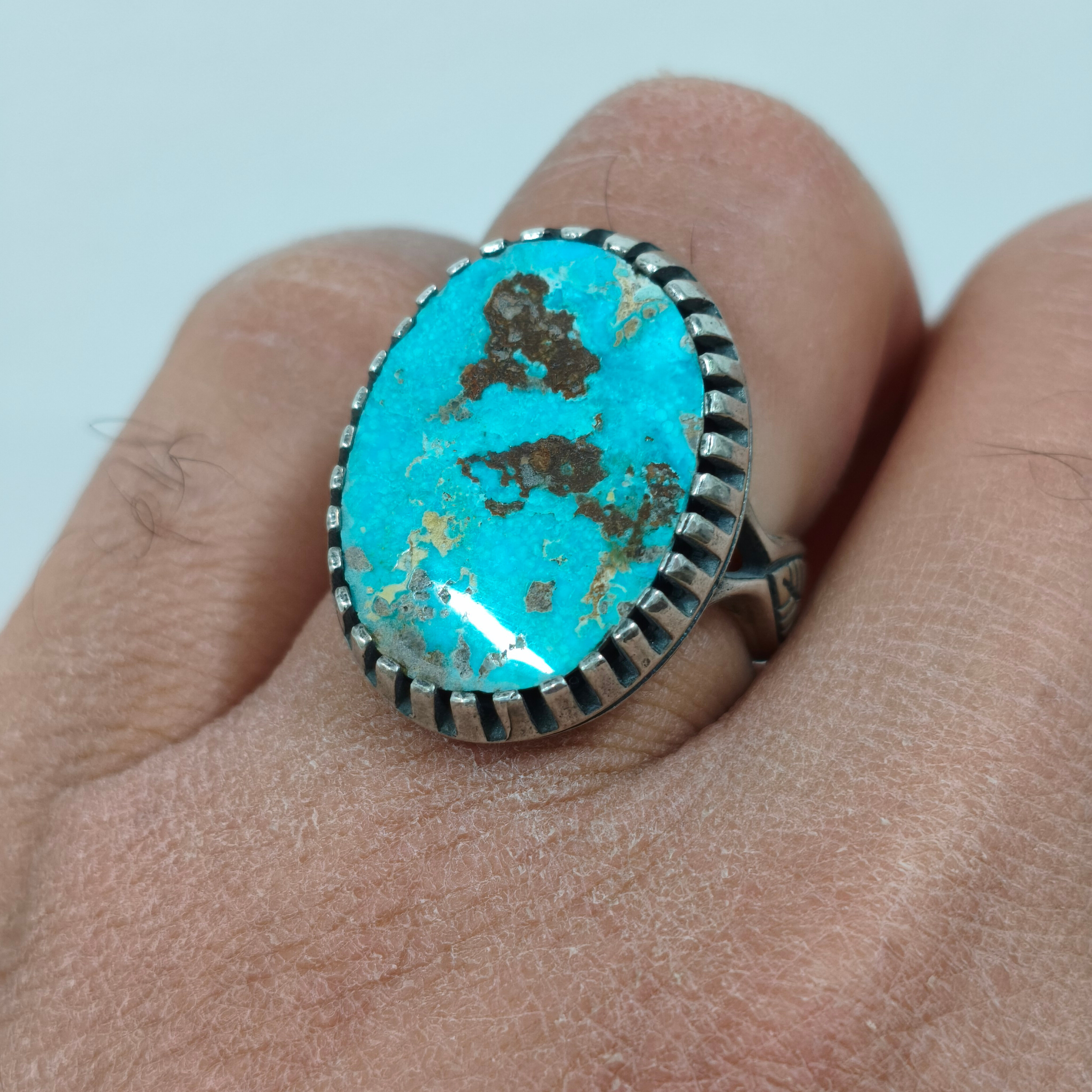 انگشتر فیروزه نیشابوری اصل و رکاب طرح صفوی،وزن ۱۳.۴۷ سایز ۶۲ رکاب نقره ۹۲۵ عیار استاندارد. با این انگشتر جلوهای از هنر و تاریخ را به دستان خود بیاورید. این انگشتر با سنگ فیروزهای خیرهکننده و طراحی سنتی صفوی، نمادی از شکوه و اصالت ایرانی است. برای کسانی که به دنبال زیبایی و ارزش واقعی هستند، انتخابی بینظیر و ماندگار است. هماکنون خرید کنید و اصالت را به دستانتان بیاورید!