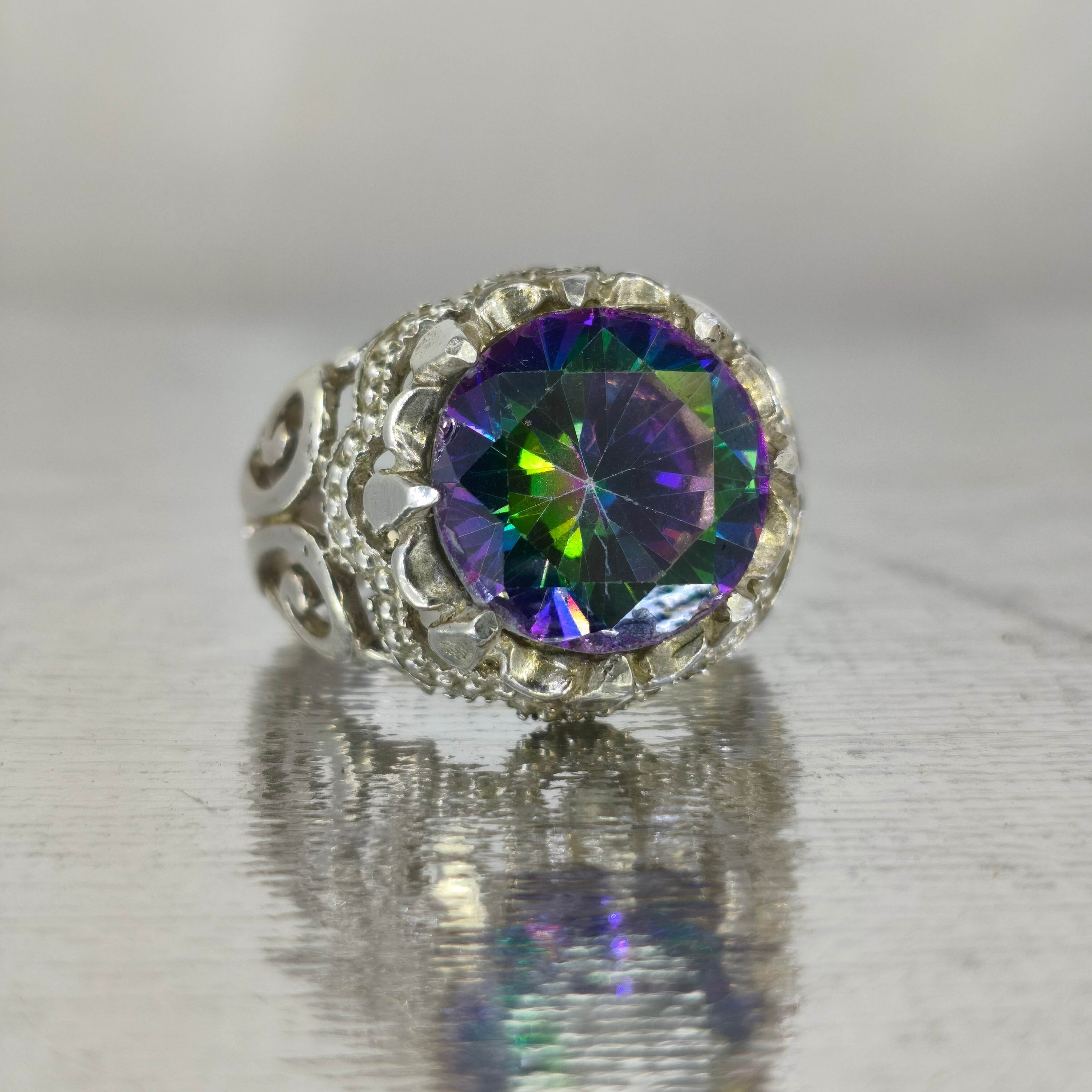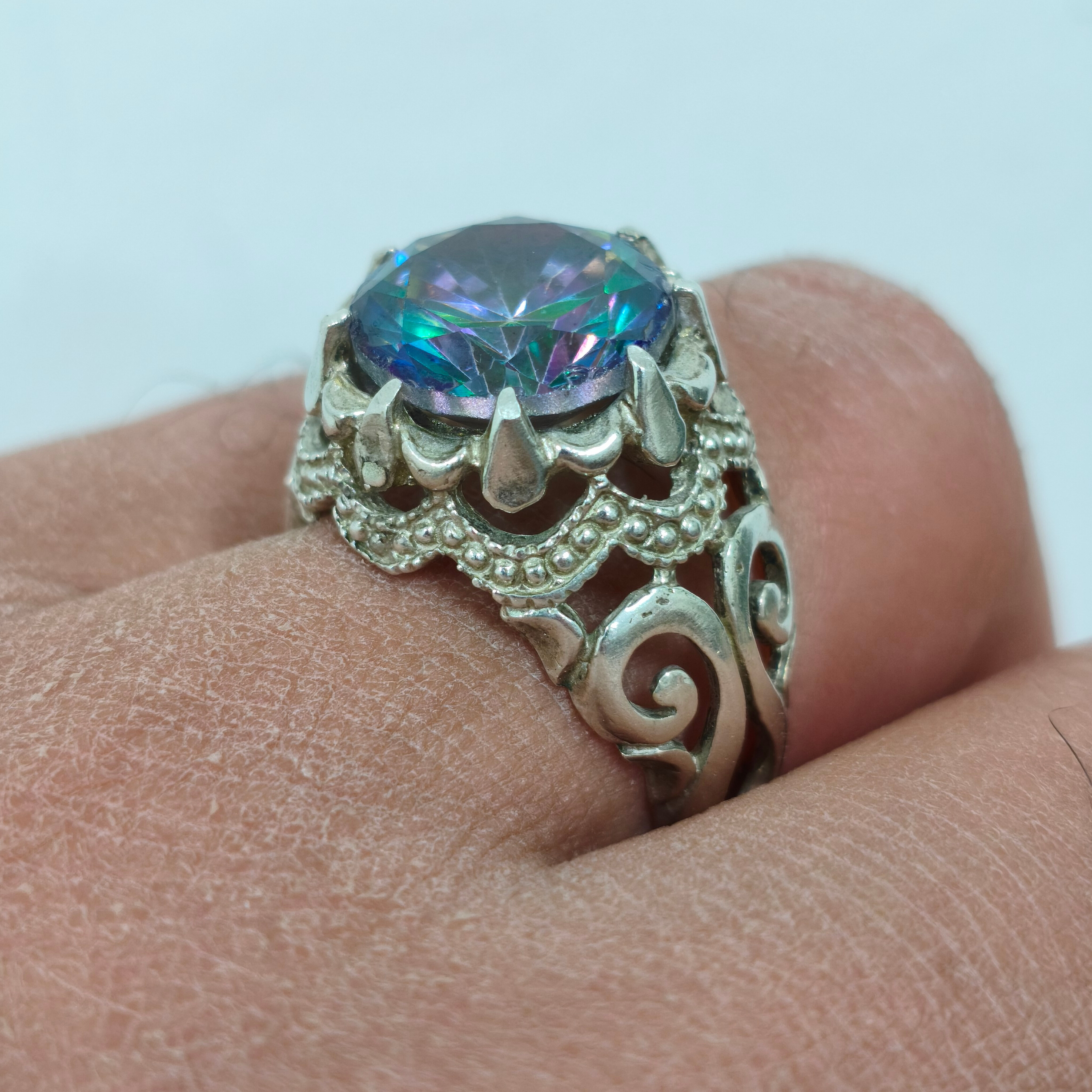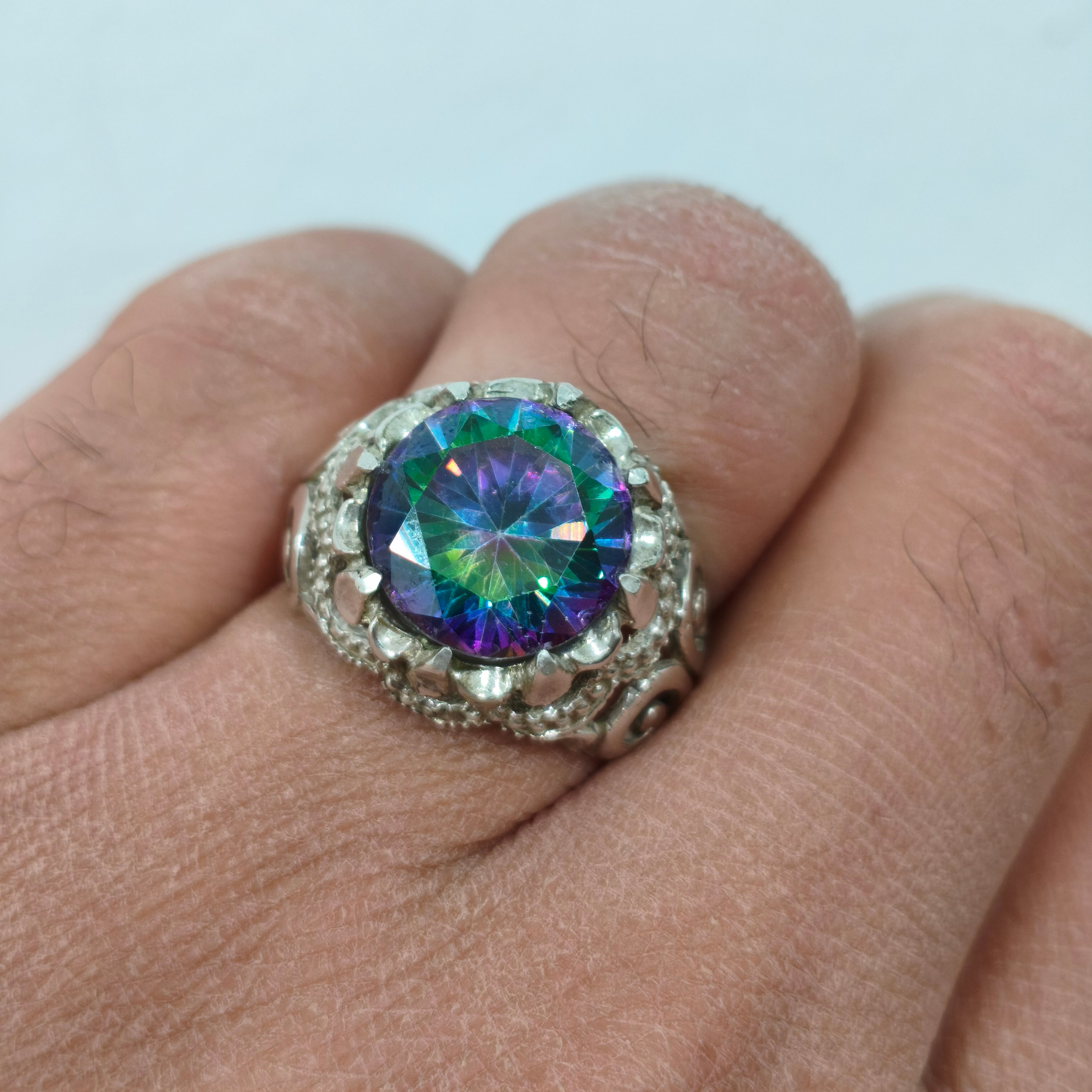 انگشتر نقره مردانه توپاز هفت رنگ،. وزن ۱۲.۶۰ سایز ۶۳-۶۴ رکاب نقره ۹۲۵ عیار استاندارد طرح چنگی درخشش واقعی را به دستانتان بیاورید! طراحی منحصر به فرد و سنگ زیبای این انگشتر، جاذبهای خاص به استایل شما میبخشند. این اثر هنری، نمادی از قدرت و شیکپوشی است. همین حالا خرید کنید و خاصترین باشید!