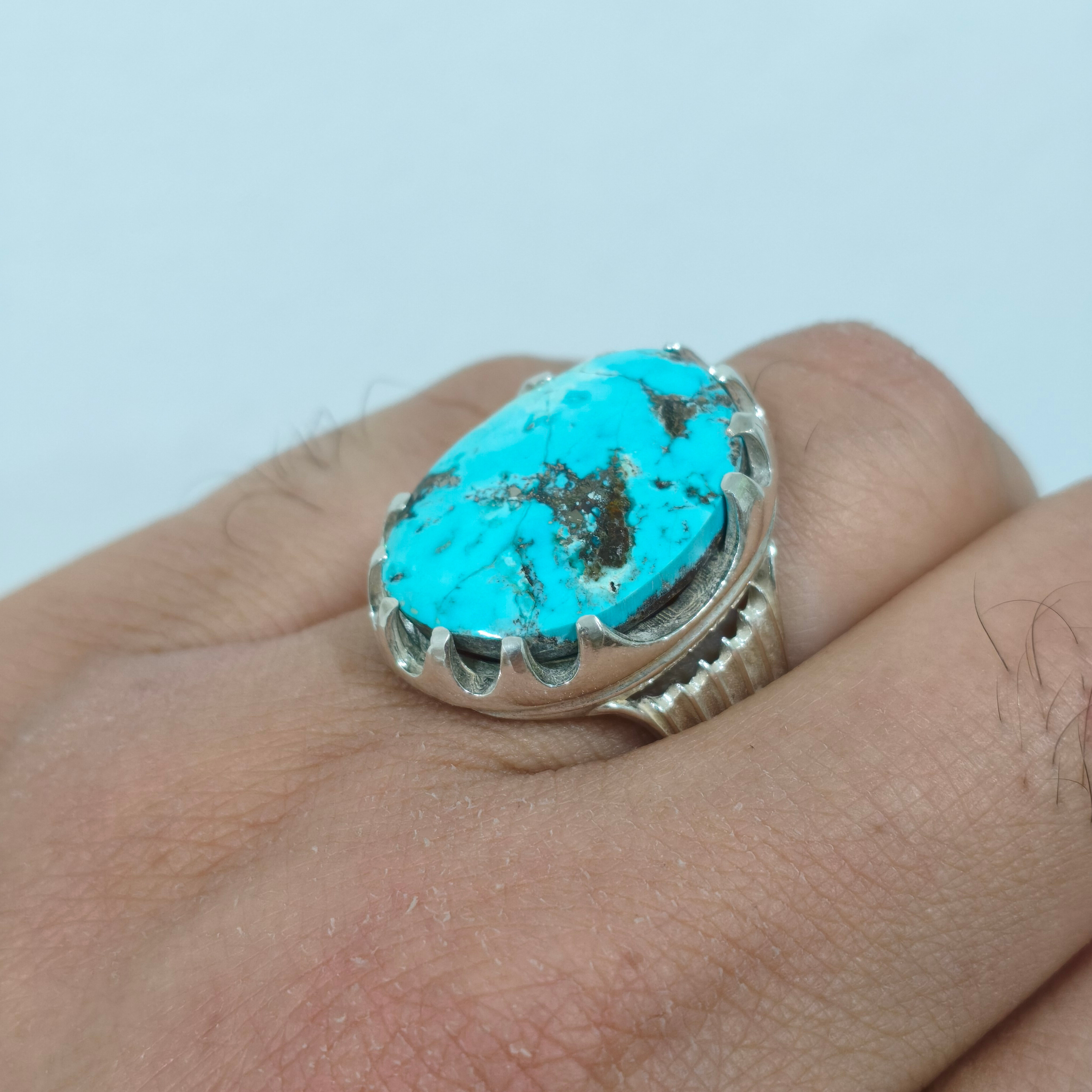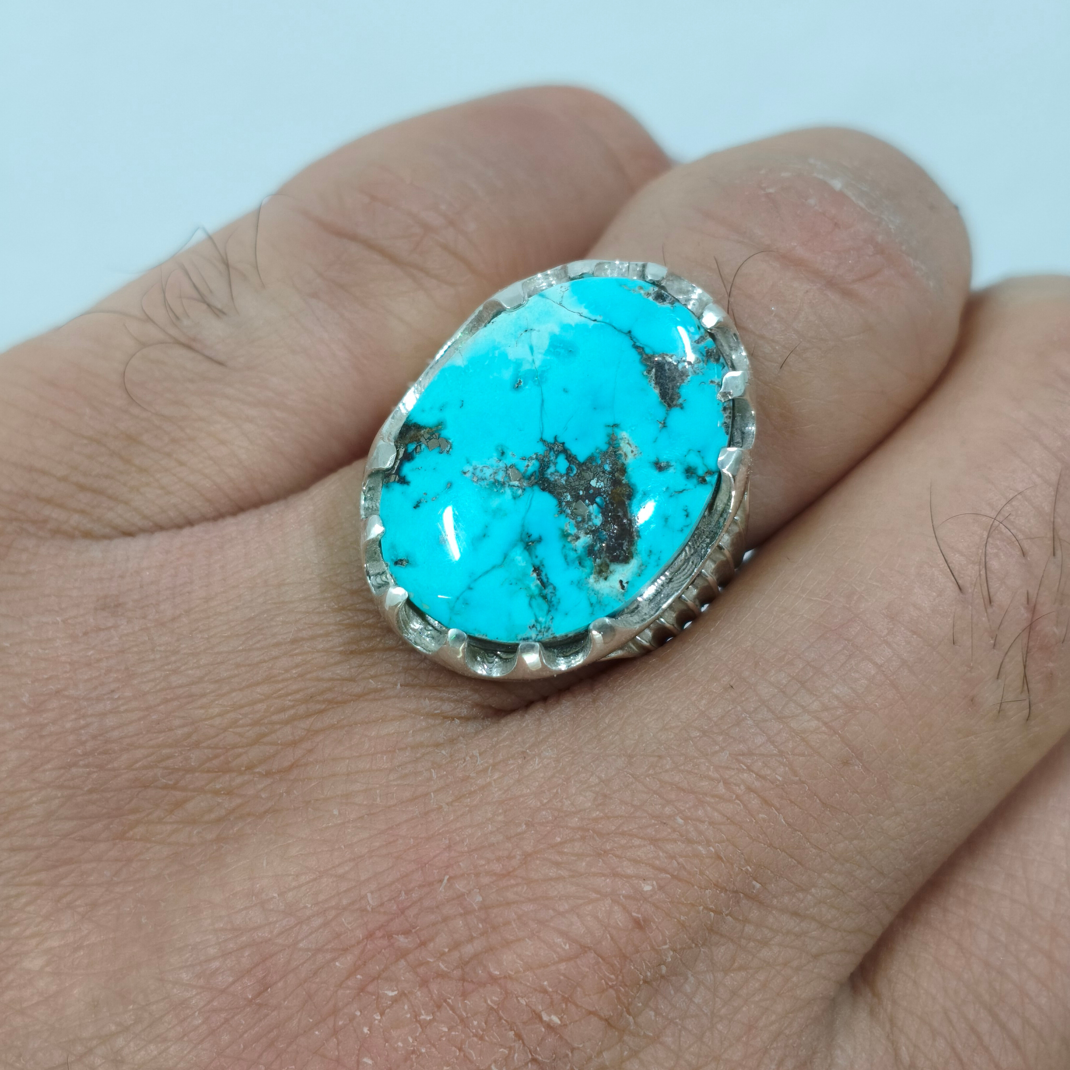 انگشتر فیروزه نیشابوری اصلی رکاب مدل صفوی خطی،وزن ۱۲.۲۱ سایز ۶۴.۶۵ رکاب نقره عیار ۹۲۵ با این انگشتر زیبایی و اصالت را به دستان خود هدیه دهید. نگین فیروزهای باورنکردنی و رکاب ظریف صفوی، این انگشتر را به جواهری بینظیر و چشمنواز تبدیل کرده است. انتخابی ایدهآل برای دوستداران جواهرات ارزشمند و اصیل. امروز خرید کنید و خاص باشید!
