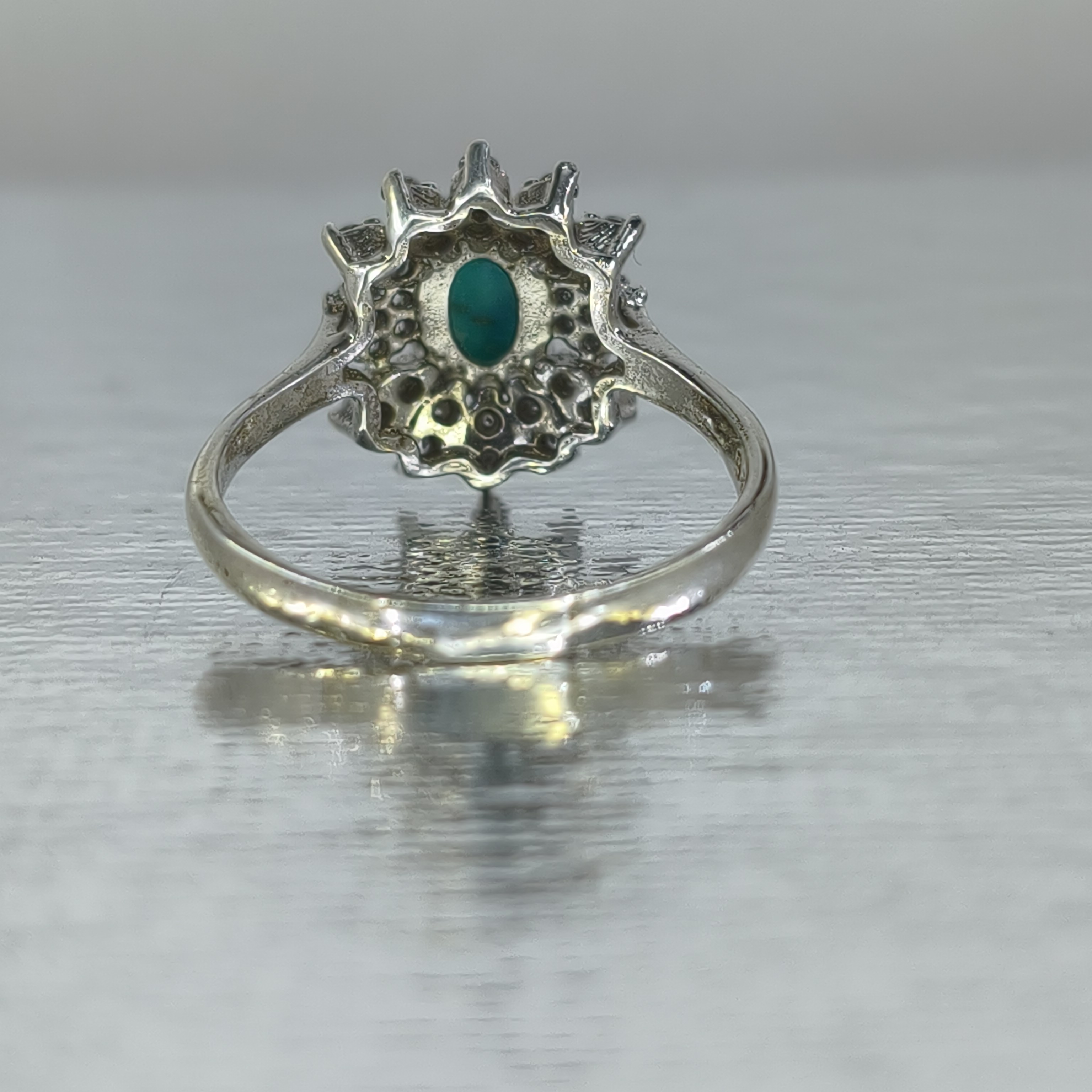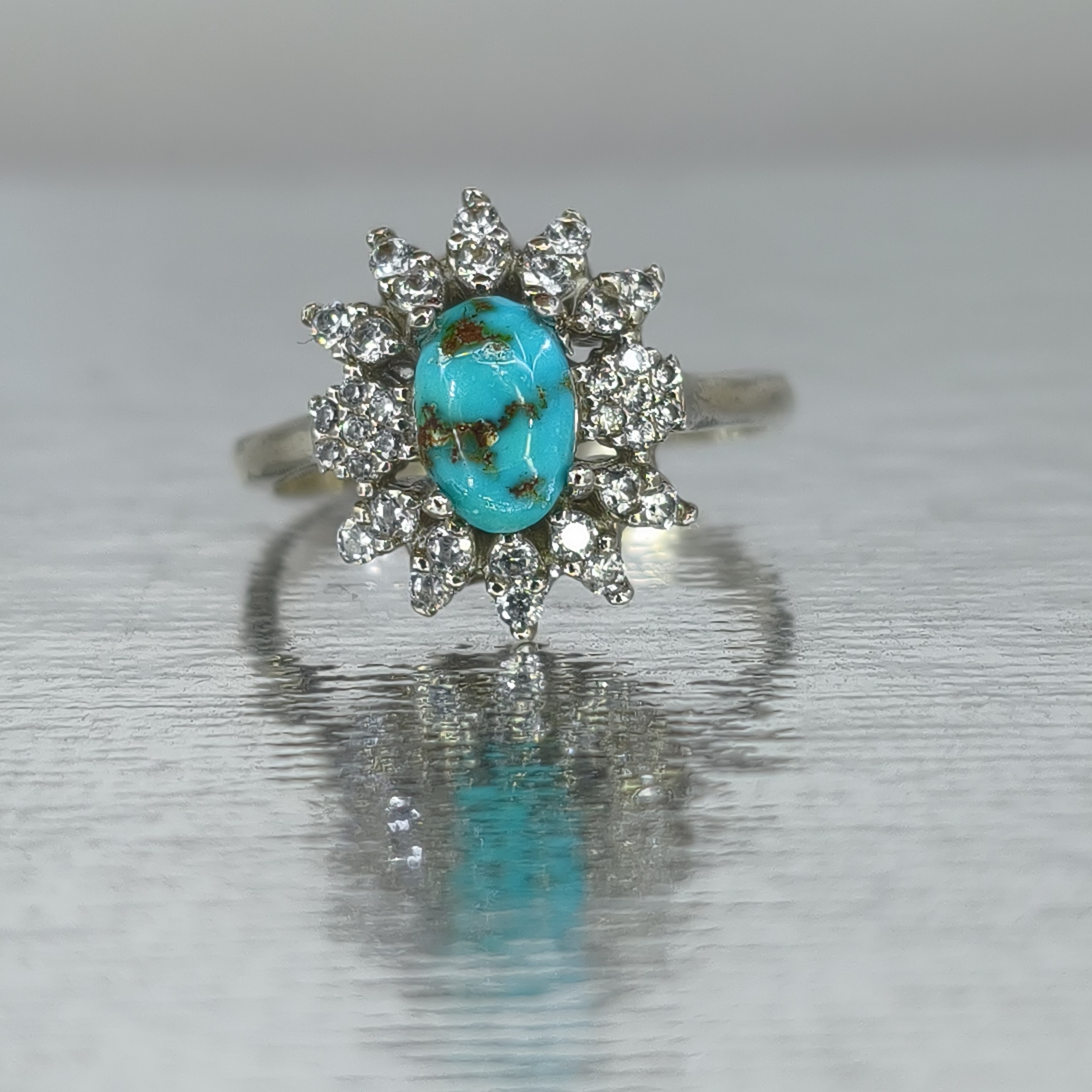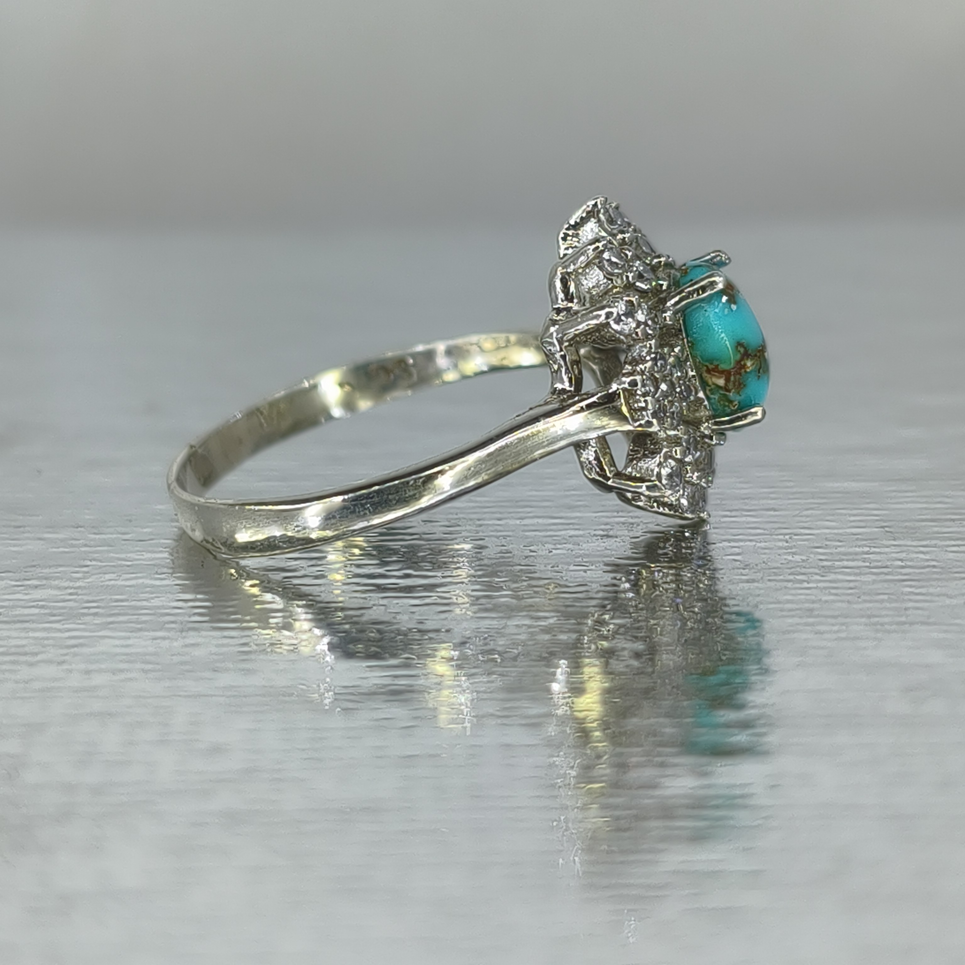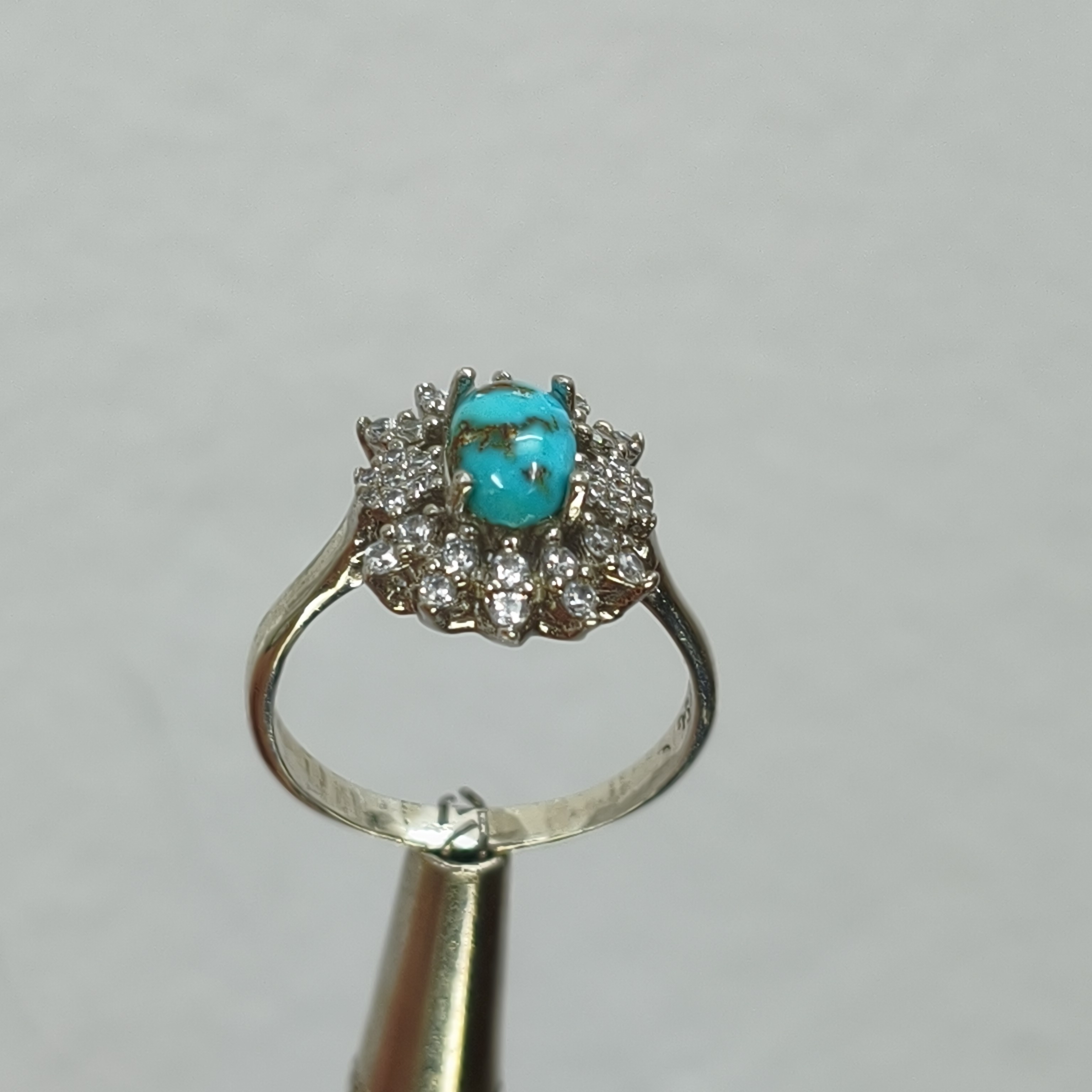 سایز ۵۶ وزن ۳.۱۱ رکاب نقره عیار ۹۲۵ عیار استاندارد نگینهای دور فیروزه برلیان شرکتی. درخشش زیبای انگشتر زنانه فیروزه نیشابوری با آبکاری رادیوم، هر نگاه را خیره میکند. این جواهر با سنگ فیروزه اصیل نیشابور و طراحی بینظیرش، نماد زیبایی و اصالت ایرانی است. با خرید این انگشتر، جذابیت و شکوهی خاص به استایل خود ببخشید و احساس منحصر به فردی را تجربه کنید.